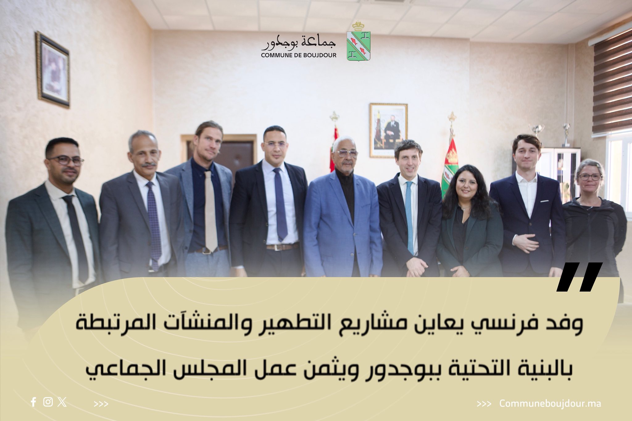 استقبل رئيس المجلس الجماعي لبوجدور السيد عبد العزيز أبا، وفدًا رسمياً عن الوكالة الفرنسية للتنمية، في زيارة عمل تندرج ضمن إطار الشراكة مع الشركة الجهوية المتعددة الخدمات بجهة العيون الساقية الحمراء، خصصت لمتابعة مشاريع تطهير السائل وتطوير البنية التحتية والمنشآت المرتبطة بها.